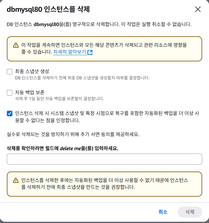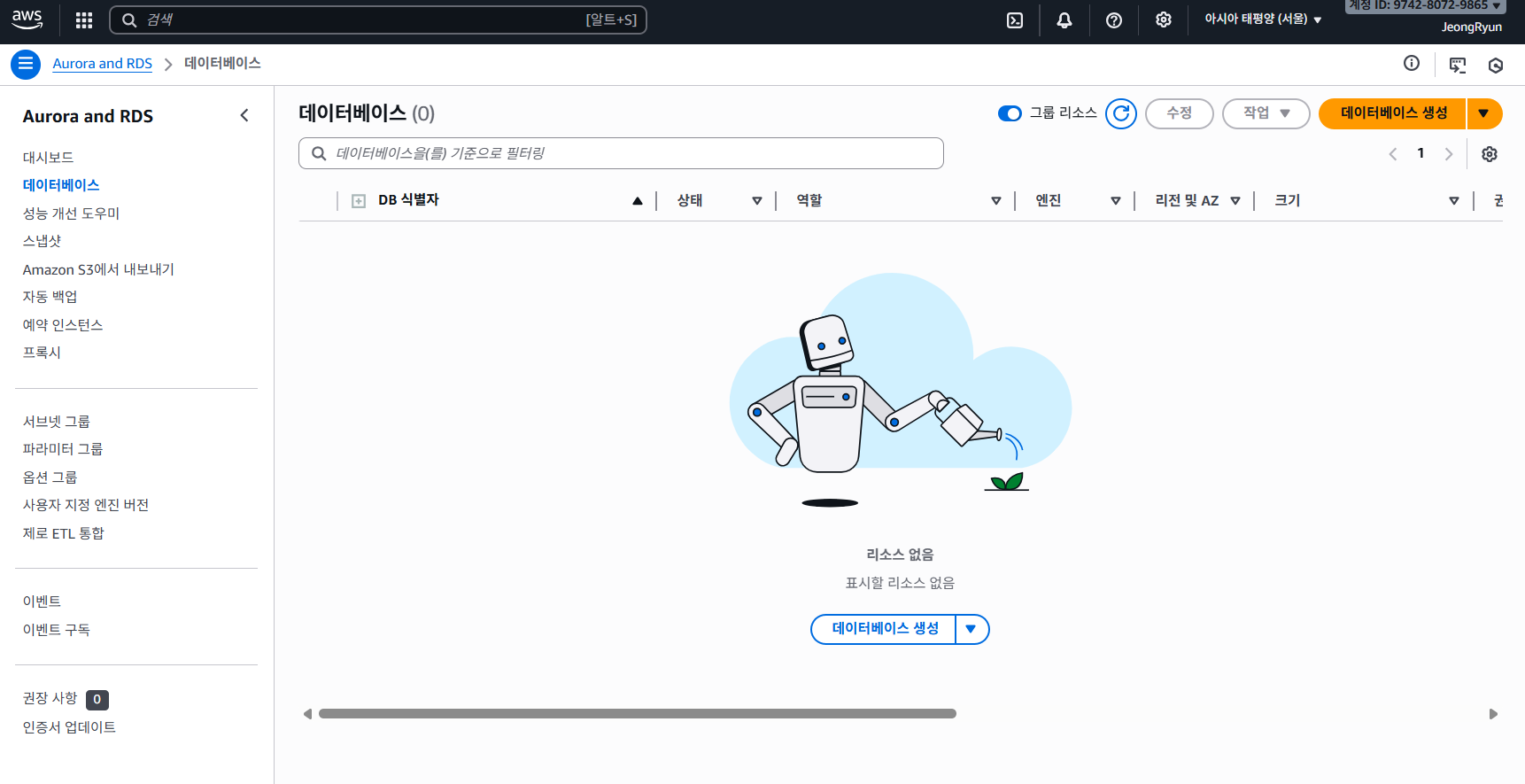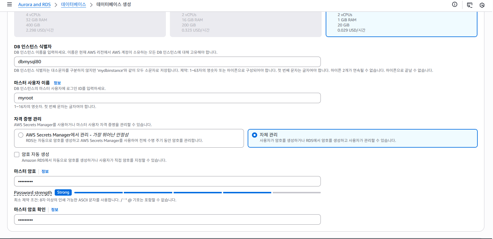 $ mysql -h [엔드포인트 붙여넣기] -P 3306 -u myroot -p
