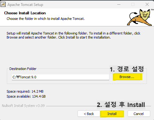5. 설치 경로 변경 : C:\Tomcat 9.0
