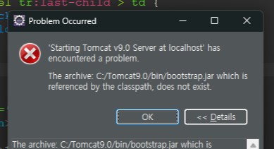 - 파일 탐색기에서 C:\Tomcat9.0\bin\bootstrap.jar 있는지 확인