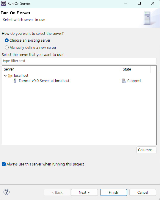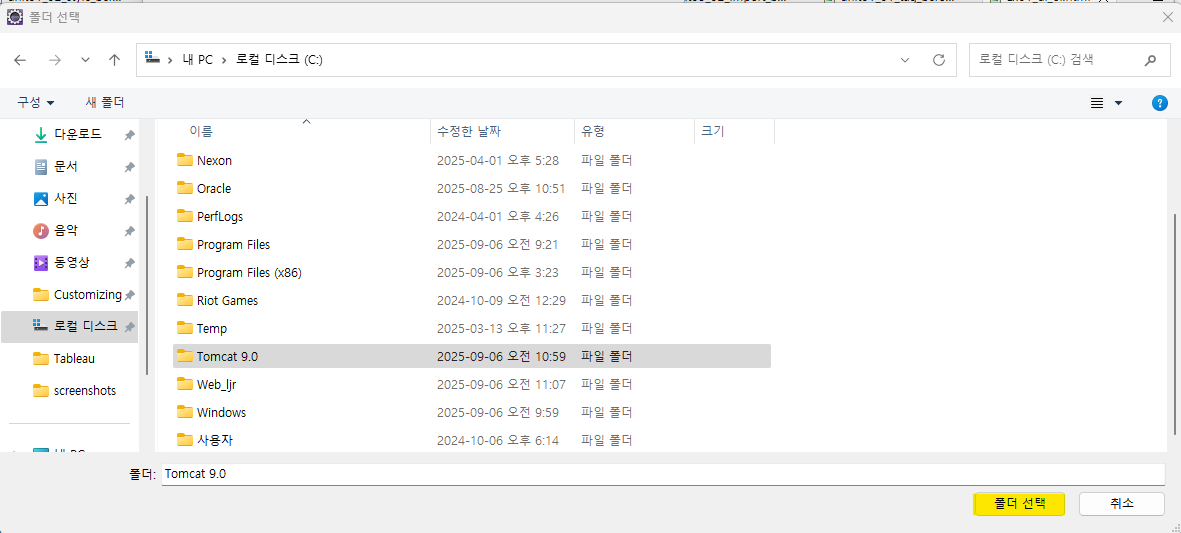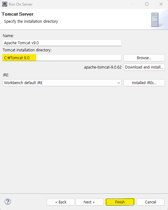2. Tomcat을 설치했던 경로 선택 후 Finish