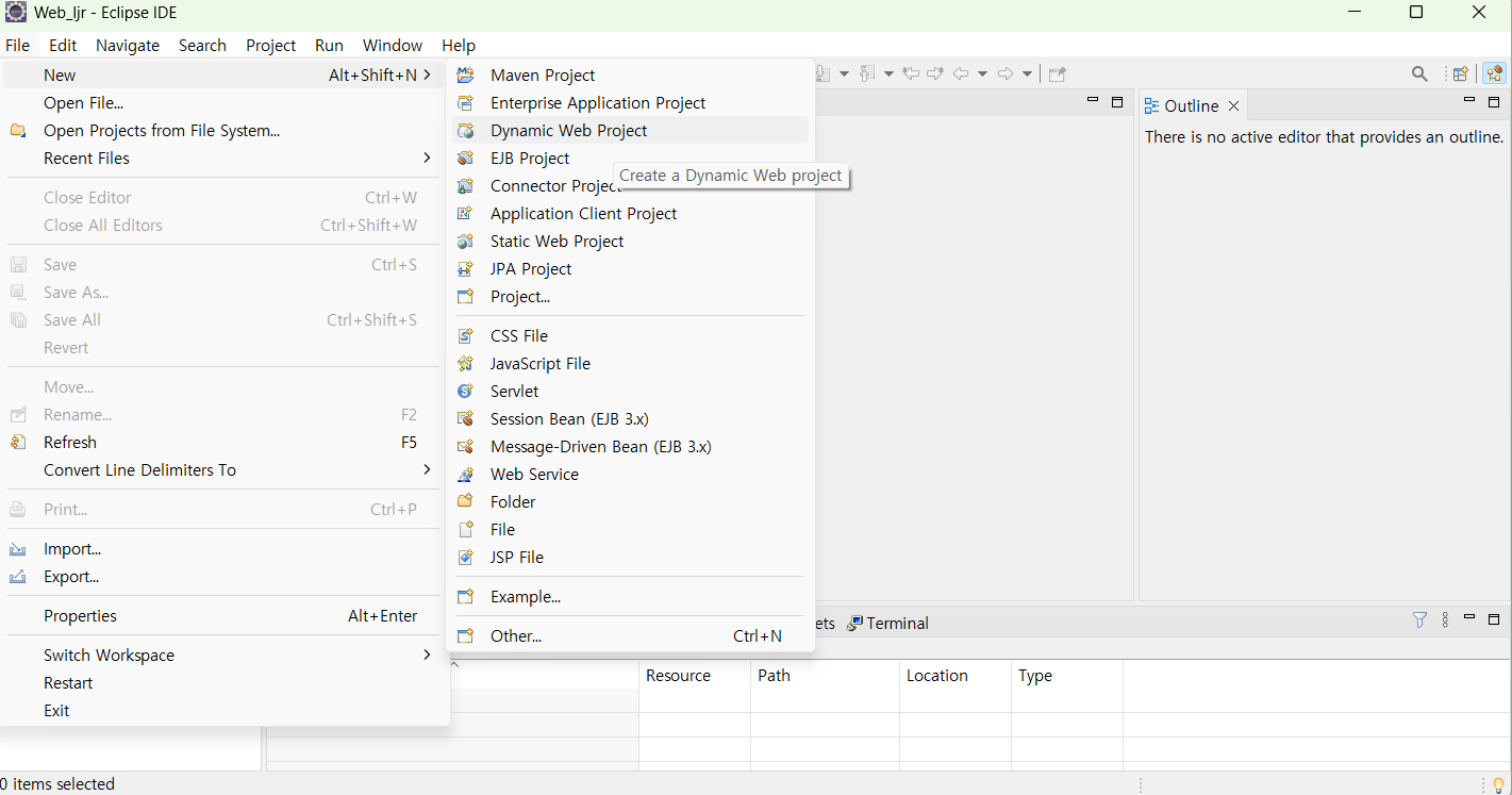 파일 생성 > Dynamic Web Procject