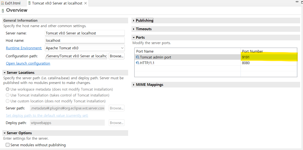 5. Tomcat admin port에 9191작성하고 저장(Ctrl + S)