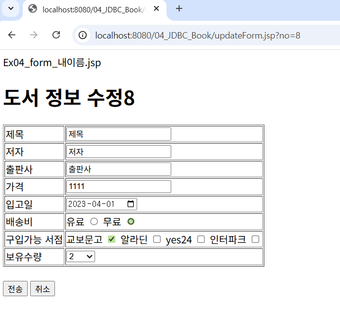 수정할 도서 정보를 보여주고, 사용자가 수정할 수 있도록 입력폼을 제공하는 페이지입니다.