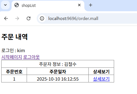 🌈10. 나의 주문내역보기 구현 (MallController)