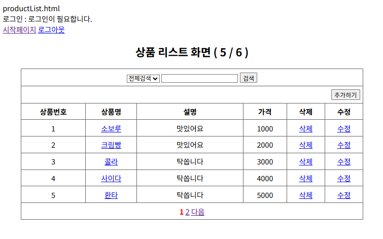 로그인X ➡️ 수정OR삭제OR 추가(삽입)시 ➡️ 로그인창 ➡️ 로그인 성공 ➡️ 수정OR삭제OR 추가폼