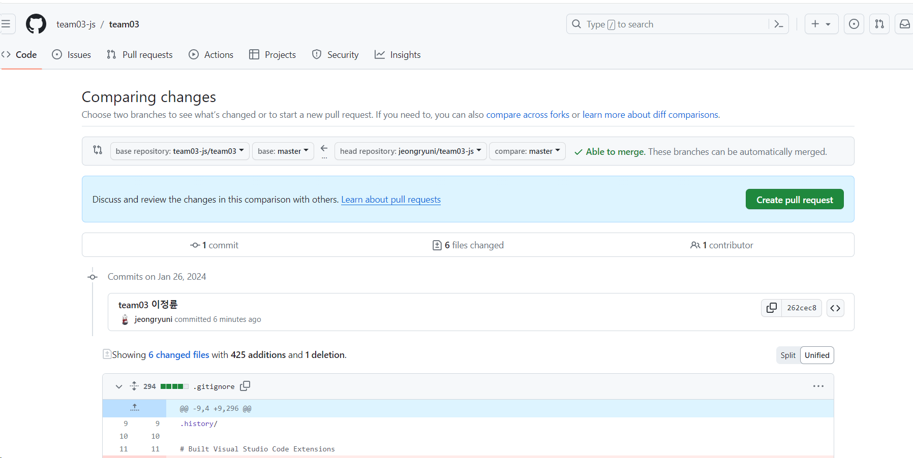 개인 저장소에 반영한 내용을 원본(팀) 저장소에 합쳐달라고 요청하는 과정입니다.