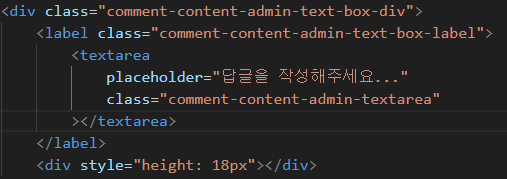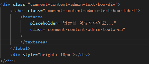 - placeholder에 "답글을 작성해주세요..."를 입력했지만 첫 줄 공백때문에 뜨지 않았다.