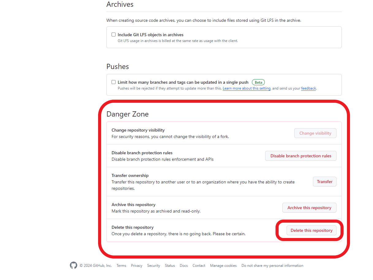3. Danger Zone 에서 Delete this repository