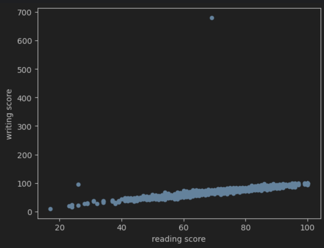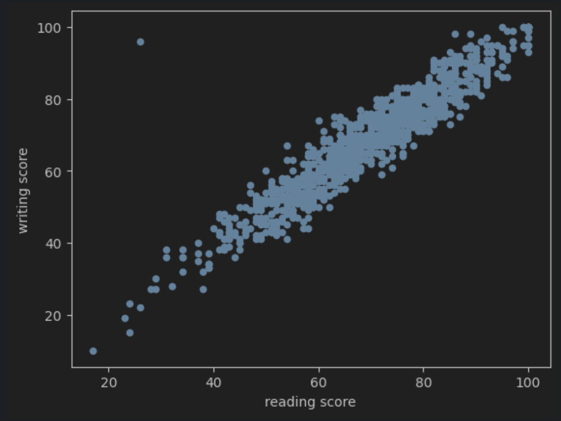 학생들의 읽기 점수와 쓰기 점수가 어떤 연관성이 있는지 확인해보았다.