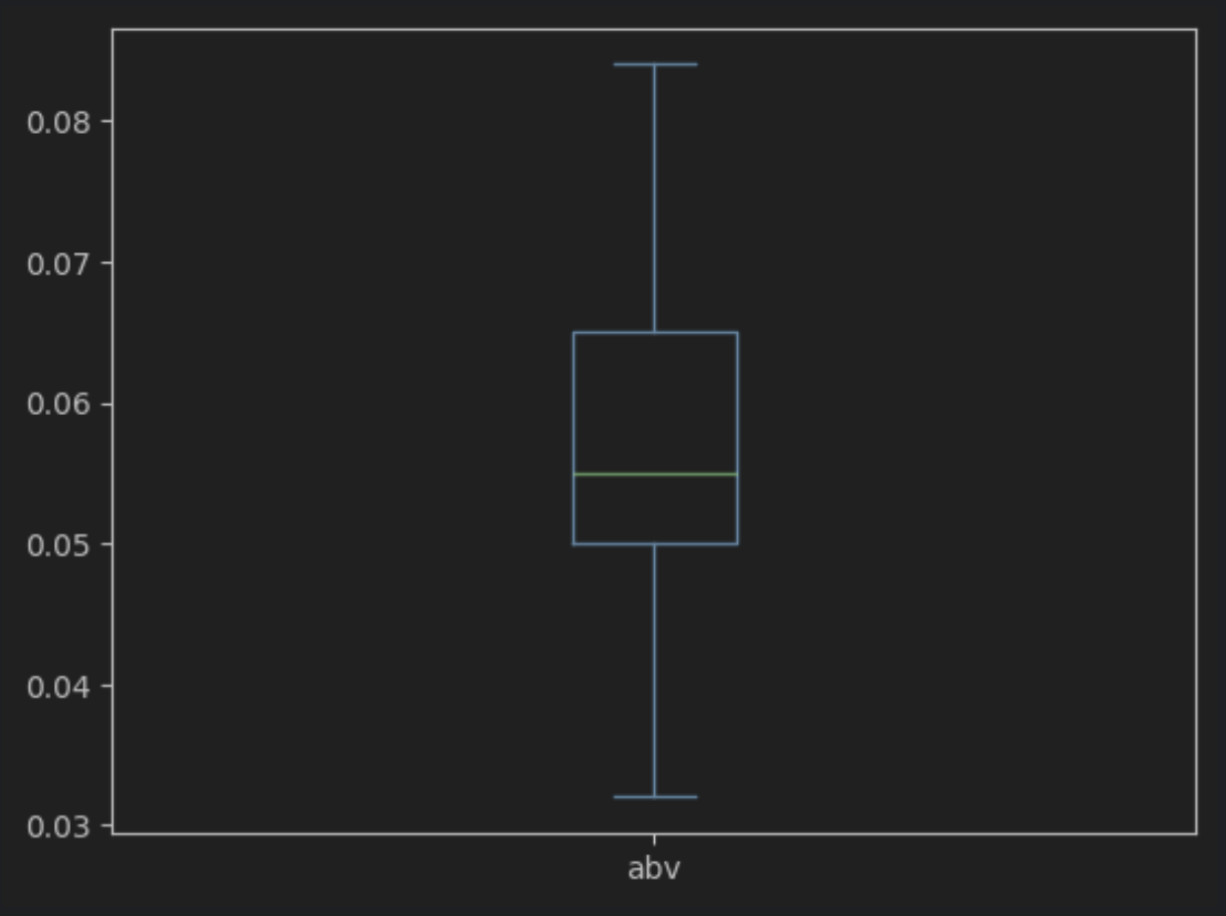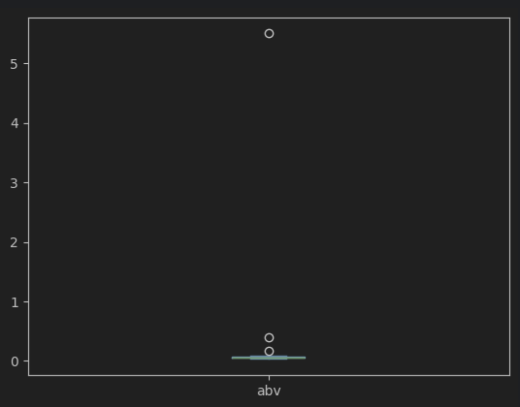 condition = (df['abv'] < q1 - 1.5 * iqr) | (df['abv'] > q3 + 1.5 * iqr)
